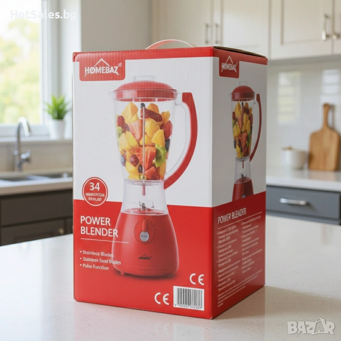 - Подходящ за лед и замразени плодове: Мощността на блендера се справя дори с по-твърди продукти без проблем.