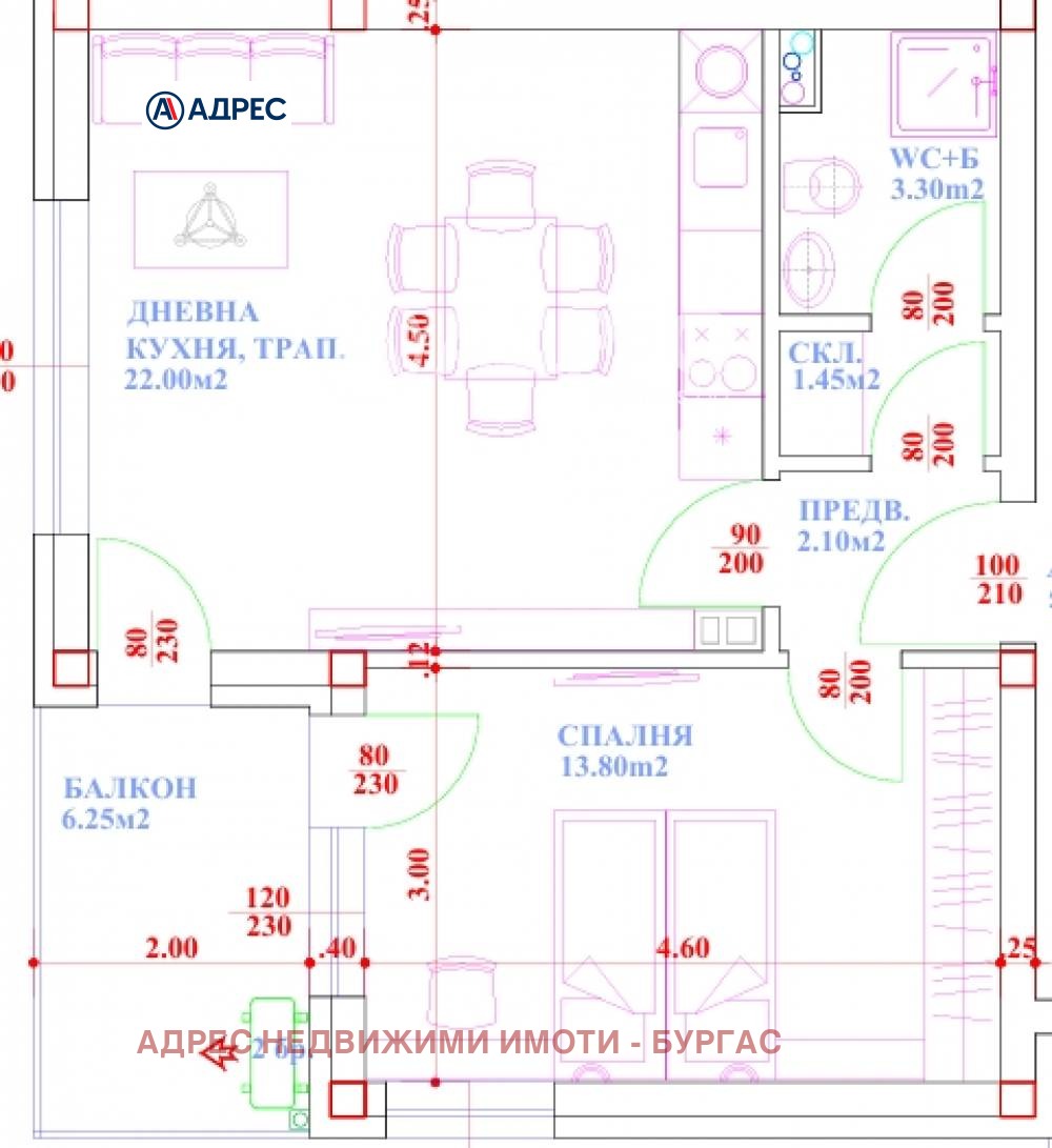 Двустаен апартамент на 3 жилищен етаж с площ 66м2