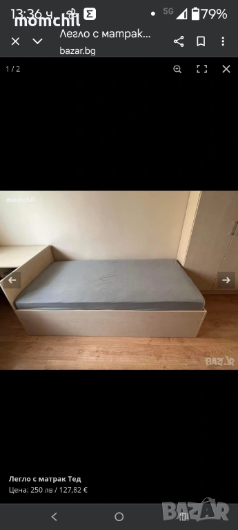 Легло с матрак., снимка 1 - Спални и легла - 54029909 Легло с матрак., снимка 2 - Спални и легла - 54029909 1/2
