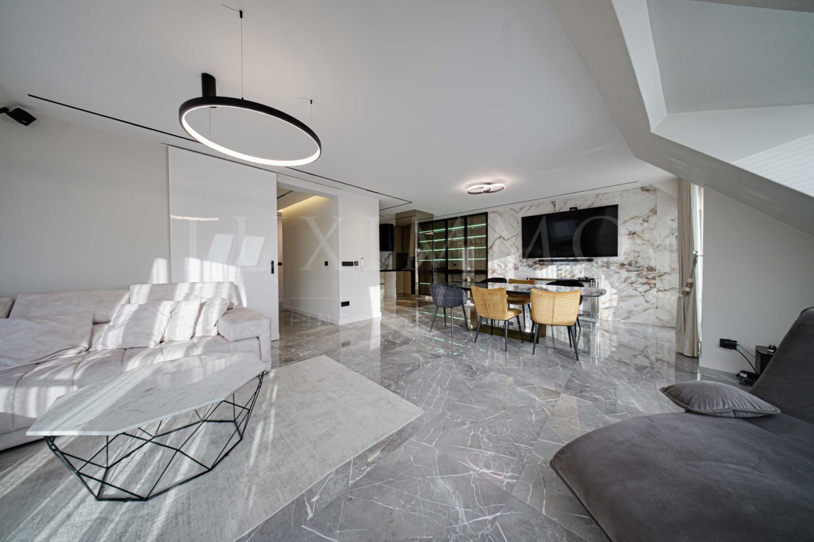 Съвременен и елегантен интериор, който съчетава удобството и комфорта на модерния живот с високо качество на материалите и дизайнерските решения.