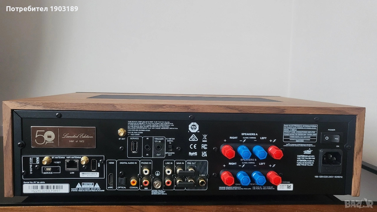 Продавам NAD Stereophonic Amplifier C 3050LE (Limited Edition 0987 of 1972). Лично купен от мен, отворен за тест (видеото е прикачено).
