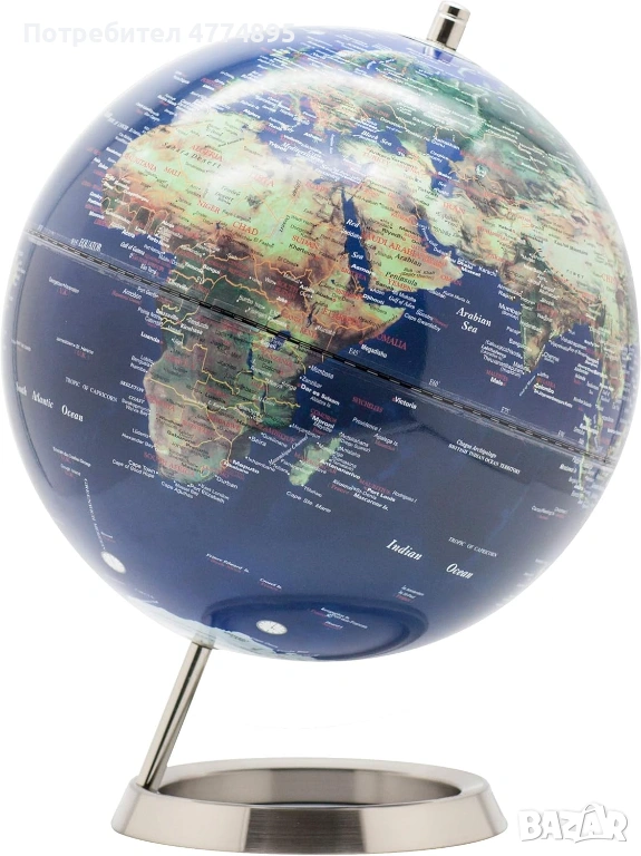 Продавам висококачествен глобус (25 см) в отлично състояние. Подходящ както за обучение, така и за стилна декорация в дом или офис.