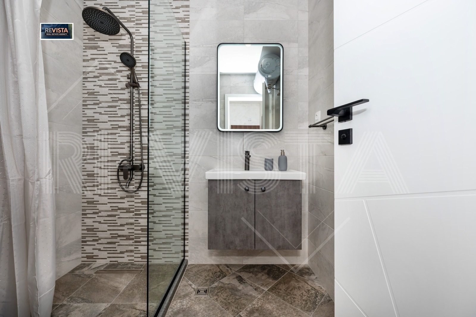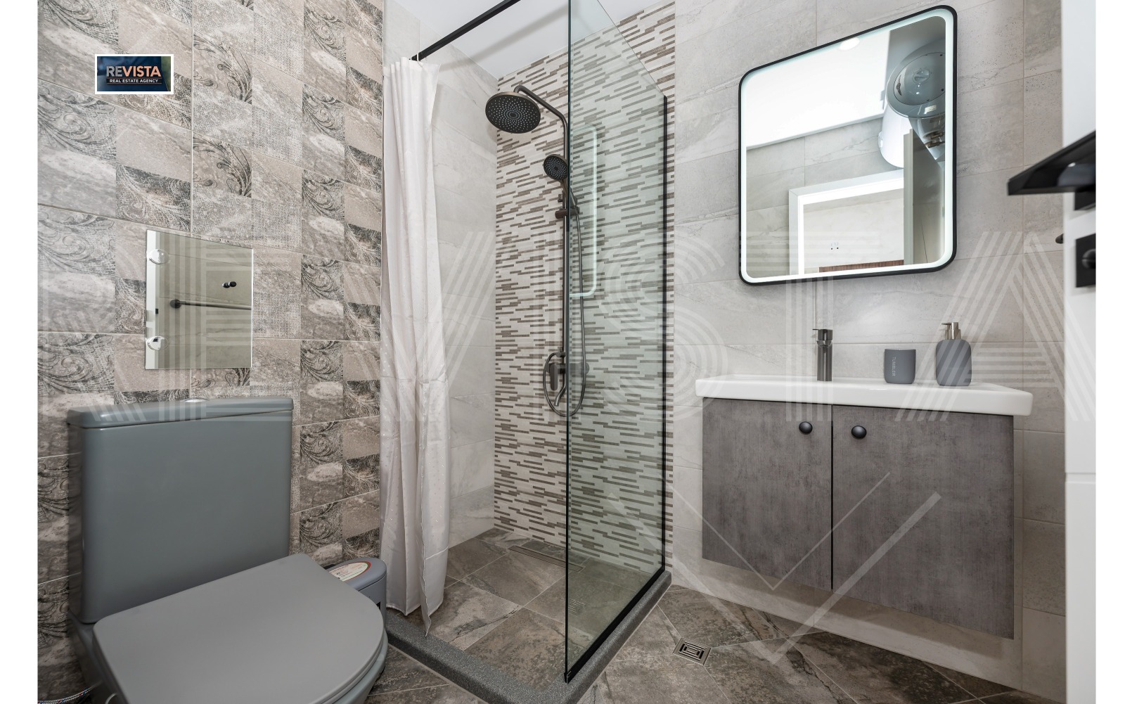 ✔️ Готова баня (структура за вграждане, тоалетна, шкаф с умивалник + огледало, линеен сифон, сифон за мивка, смесител за мивка, душ колона, вентилатор, параван, бойлер);