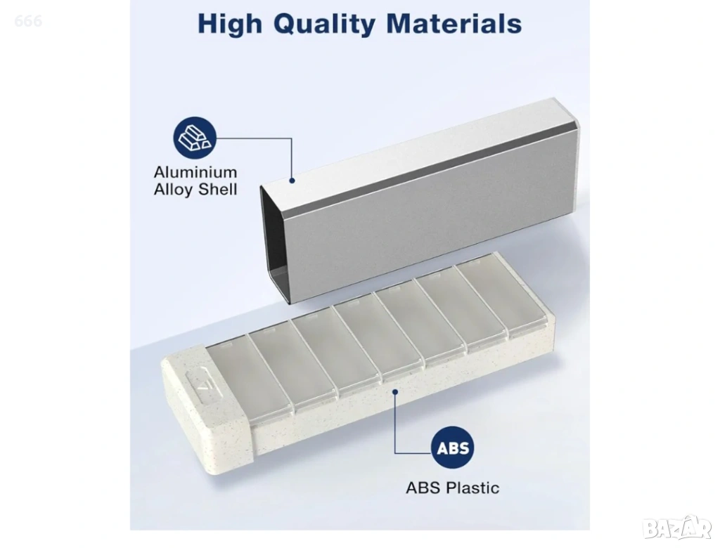 Висококачествен материал: Тази метална кутия за хапчета е изработена от алуминиева сплав и ABS пластмаса, което я прави по-стабилна за съхранение на витамини, лекарства и хранителни добавки.