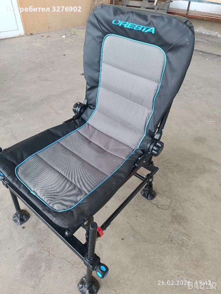 Продавам употребяван фидер стол Cresta Blackthorne Comfort chair High 2.0.Всички врътки са наред,нормални следи от употреба,без скъсано и протрито.Здрава и лека рамка,широк и удобен с 25мм крака .