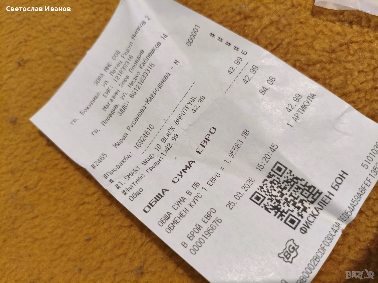 Гривната е използвана точно 3 дни, БЕЗ АБСОЛЮТНО НИТО ЕДНА ДРАСКОТИНА! Закупена от Зора с 2 годишна гаранция. Причина за продажбата е, че този не допадна на жена ми и трябваше да и купя Redmi Watch 5. Цената е КРАЙНА! За гр.Пловдив - лично предаване. За др.населени места еконт/спиди