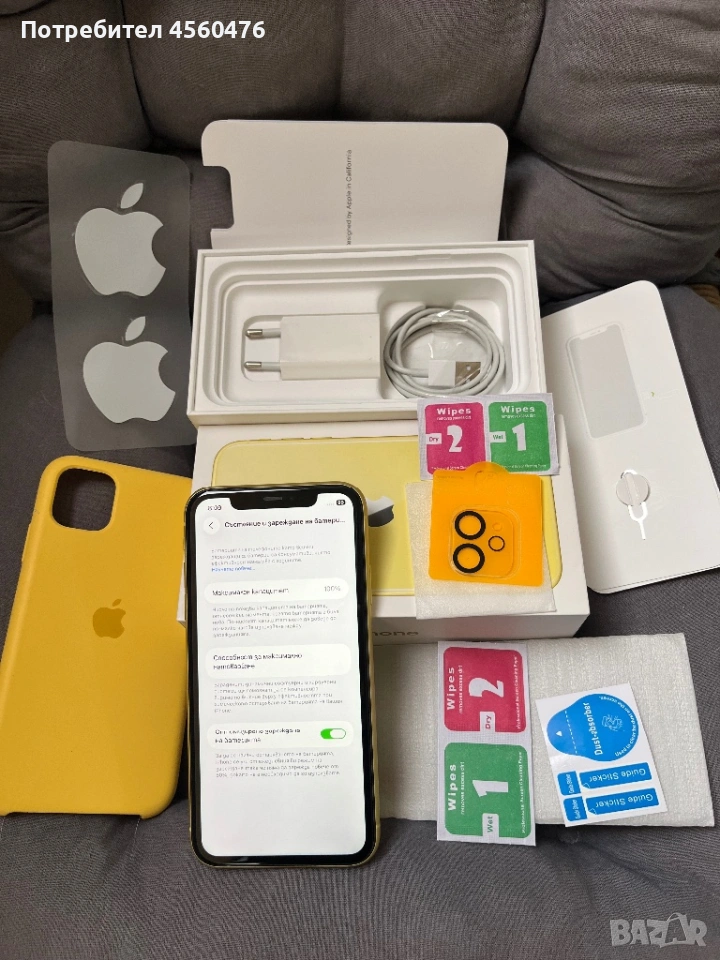 iPhone 11 64 go жълт yellow 100% батерия НЕРАЗЛИЧИМ ОТ НОВ → Обява 54032093