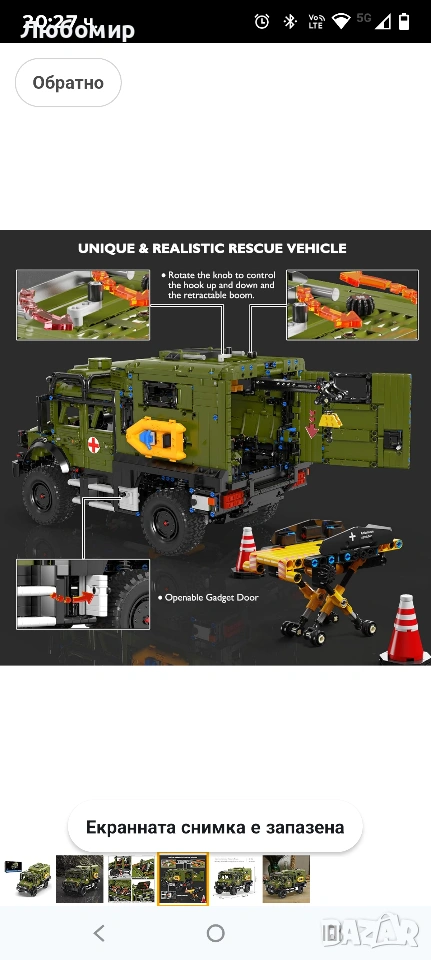 Забавно при строеж. Военният спасителен камион се състои от 3850 висококачествени строителни блока и предлага безкрайно забавление при строеж. Включени са спасителен каяк, носилка и други устройства за реалистични спасителни симулации. Забавна игра за цялото семейство, която насърчава креативността и въображението.