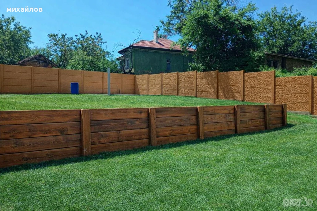 Производител на бетонни кашпи за терасиране на дворове и градини.Предлагаме и армирани бетонни панели за подпорни стени с имитация на дървени талпи.