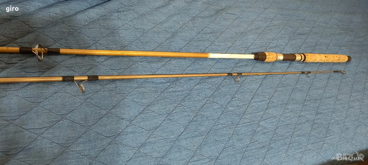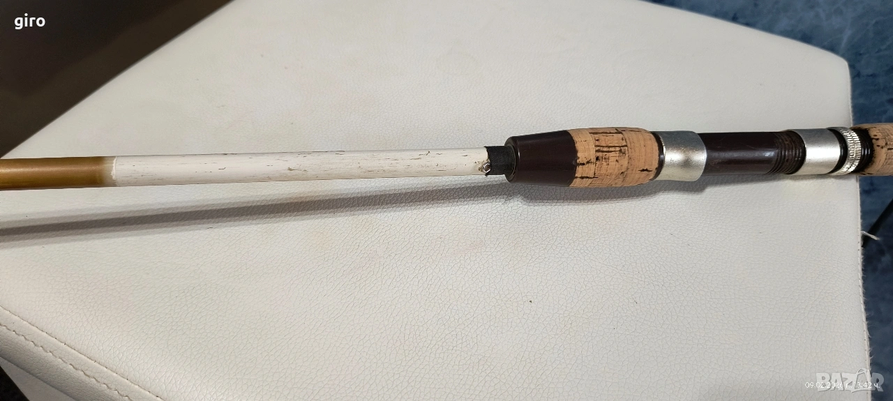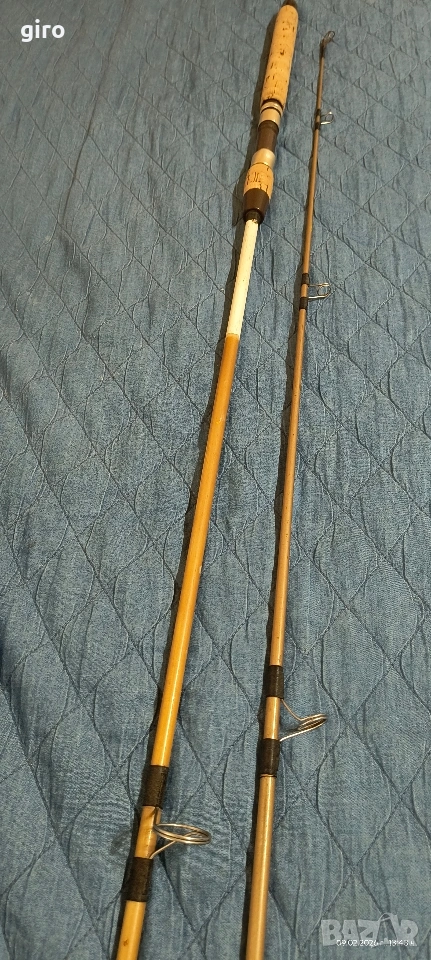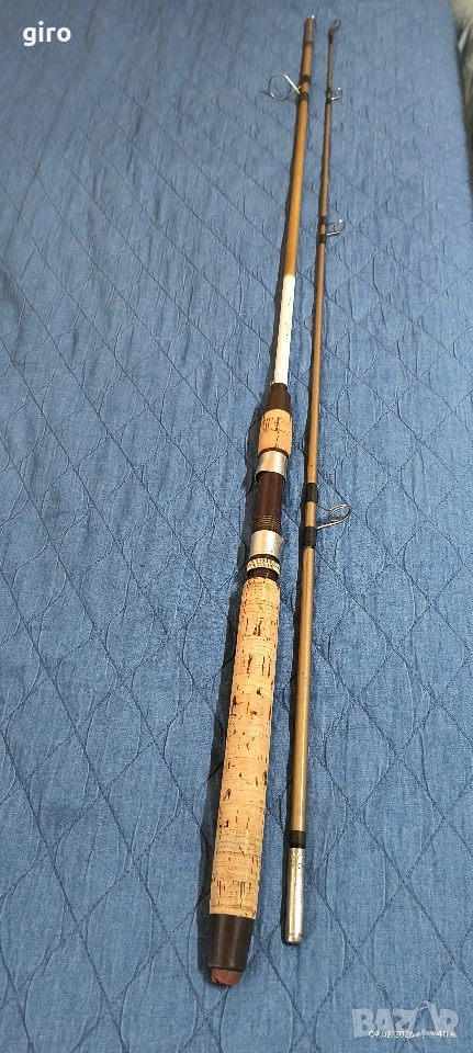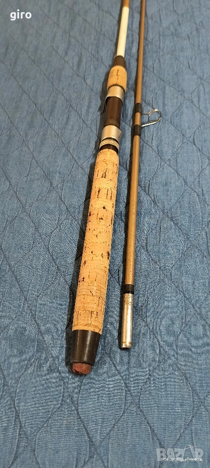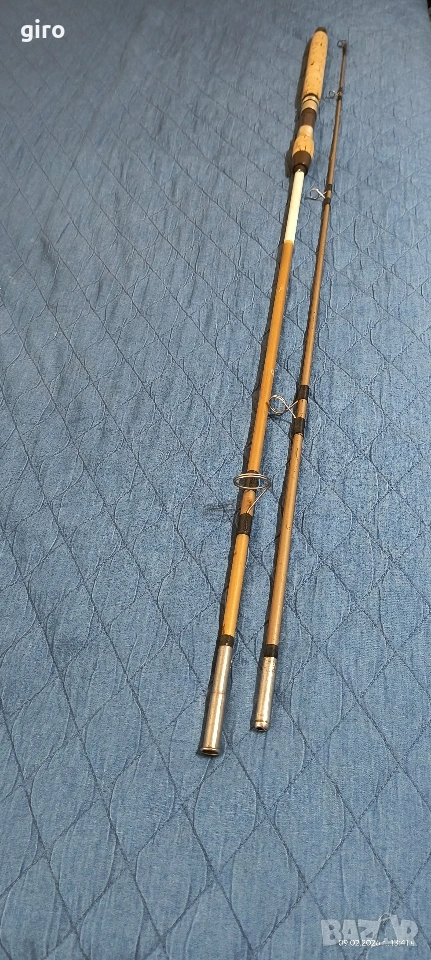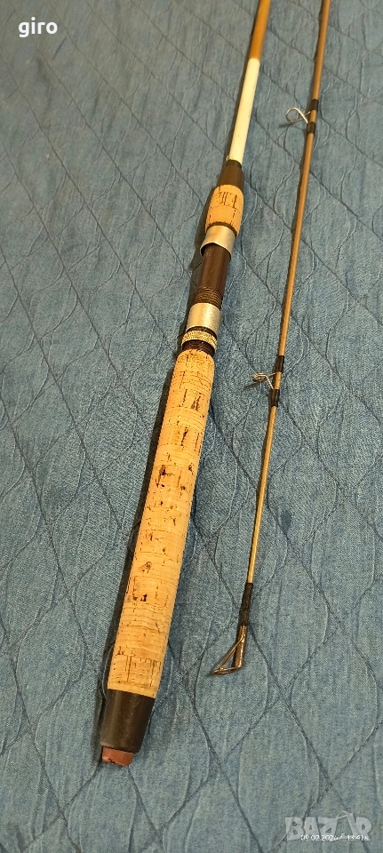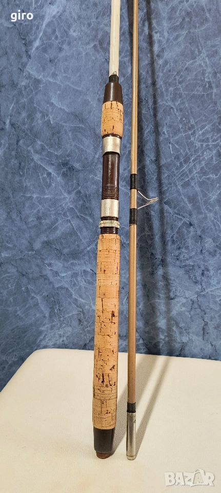Пръчка за риболов Germina Standard с дължина 210 см. с акция 60 гр.двуколенна с коркова дръжка от плътно фибро стъкло изключително здрава за риболов на тежко в много добро състояние производство на ГЕРМАНИЯ през миналия век.