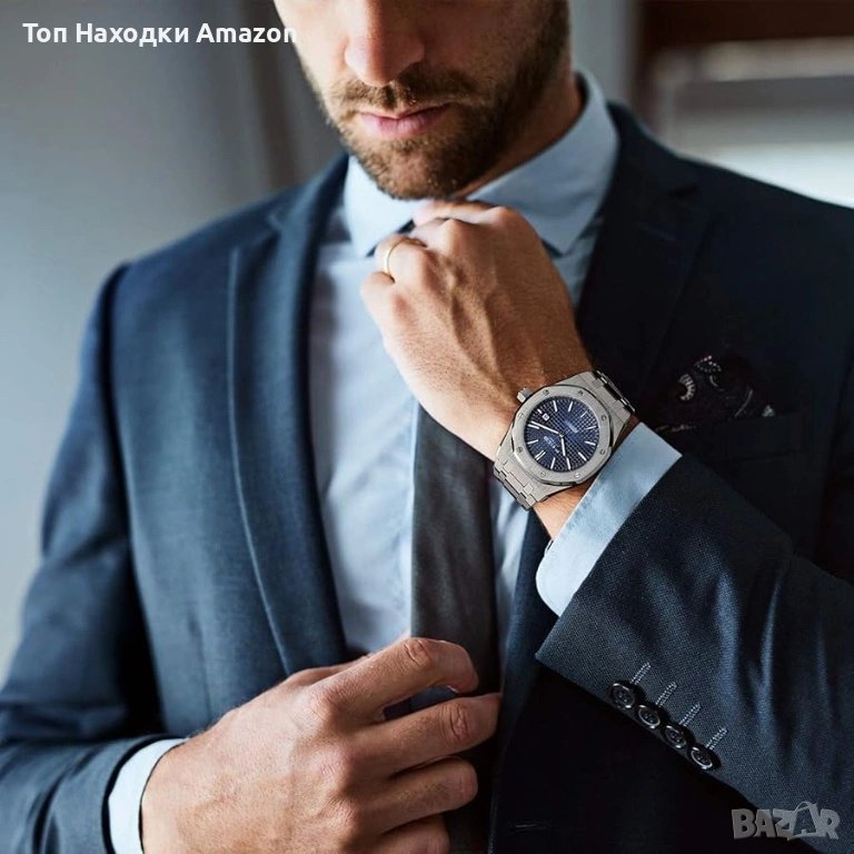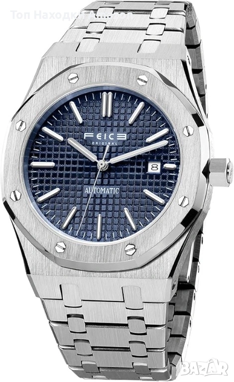 Стилен мъжки автоматичен часовник на марката FEICE, модел FM019. Часовникът е вдъхновен от вечния „Royal Oak“ дизайн, съчетаващ луксозно излъчване и високо качество на изработка.