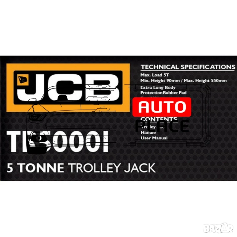 Професионален сервизен крик на марката JCB с товароподемност 5 тона, с две помпи и усилена конструкция. Крикът е снабден с педал за бързо повдигане.