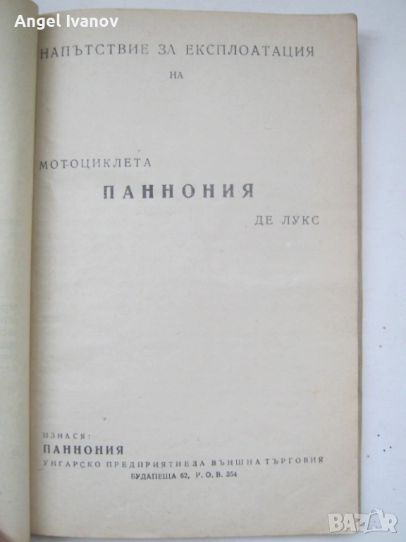 Ръководство за експлоатация на мотоциклет Панония.Липсва първата и последната страница. Продава се както е.