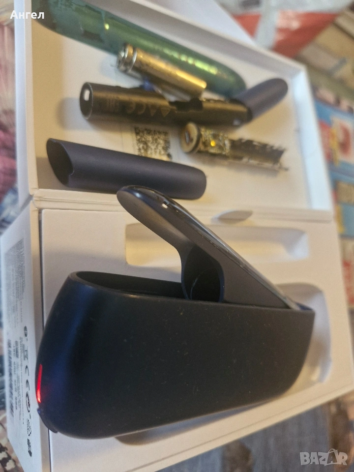 Тъмно син комплект. Разглобен холдер, счупен нагревател, зареждачката свети червено.