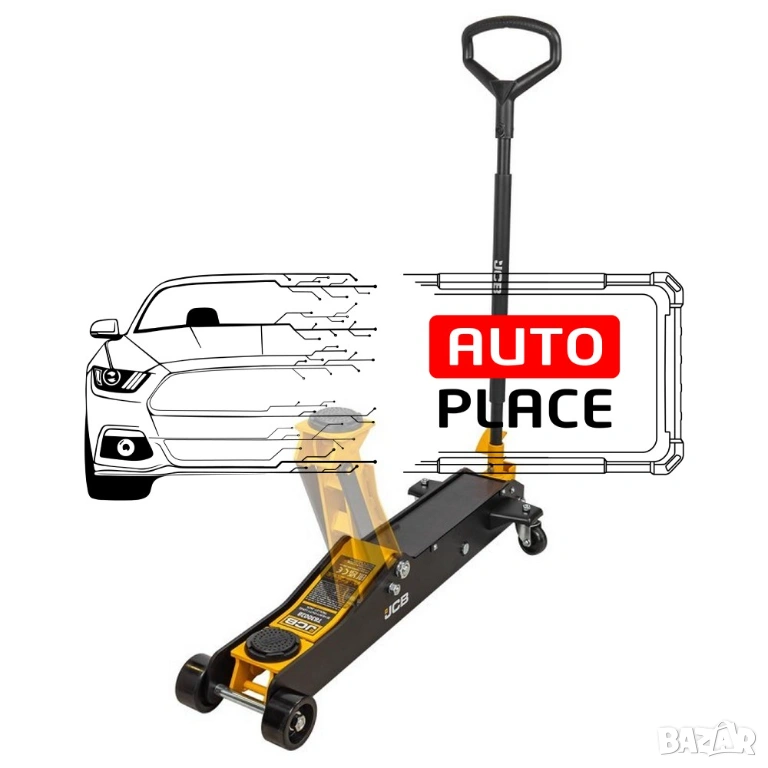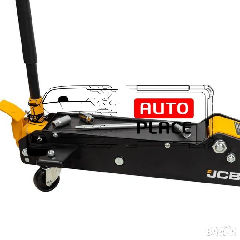 Професионален сервизен крик на марката JCB с товароподемност 3т , удължена конструкция за лесна работа , крикът е снабден с педал за бързо повдигане.