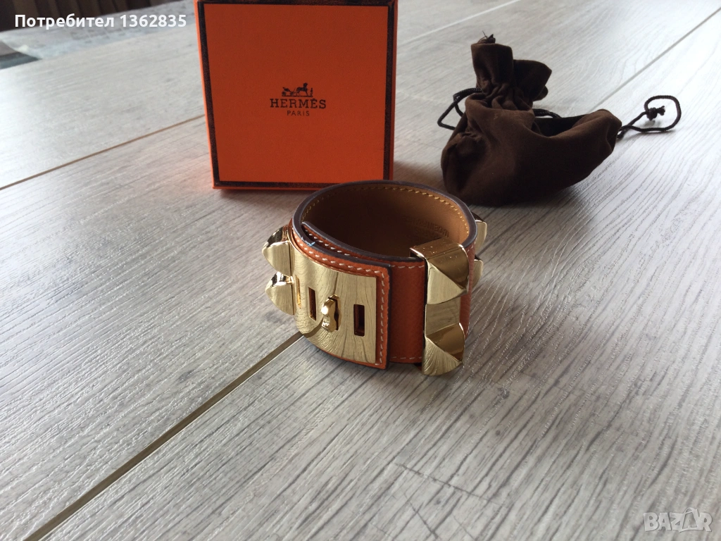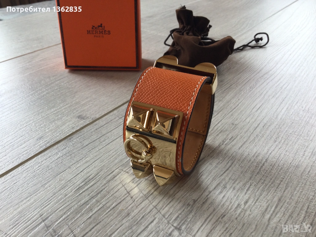 НОВА оранжева гривна от естествена кожа HERMES Paris Collier de Chien → Обява 54033291