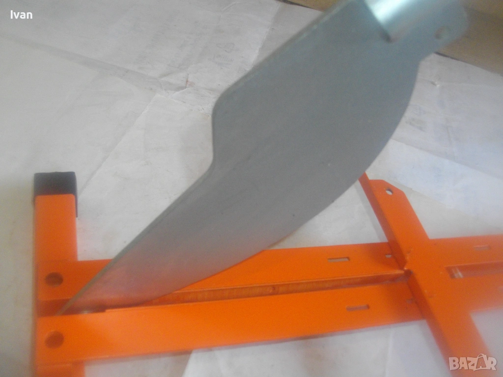 Цялата гилотина е от дебело, масивно желязо с дебелина 3 мм. Метален стопер на ножа при рязане. Ножа е с дебелина на стоманата 4 мм.