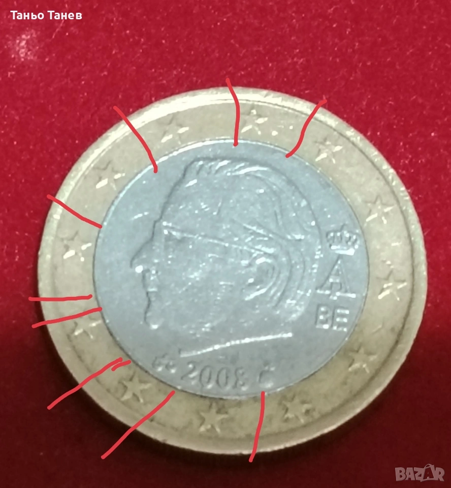 1Евро Белгия Алберт Втори. (2008г) Със напластяване → Обява 54033435