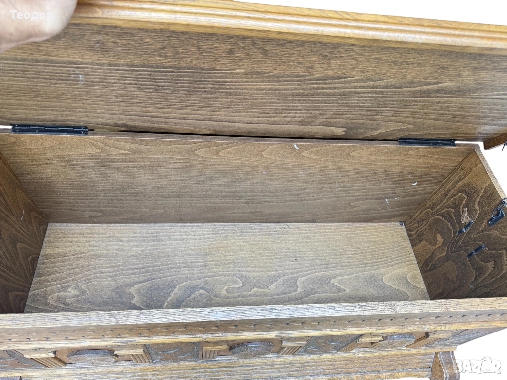 Ръчно изработен дървен сандък с орнаменти – антикварна мебел
