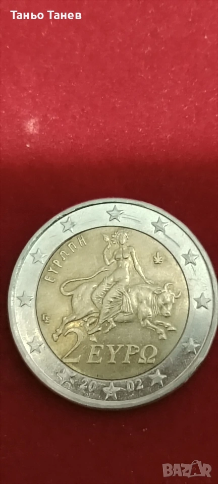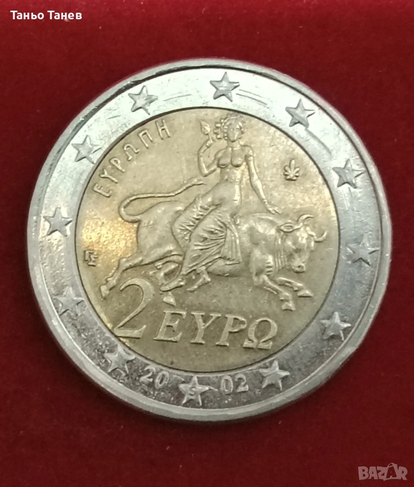 2Евро Гърция-2002 Преваплащението на Зевс като Бик. Символ (S) Финландия.