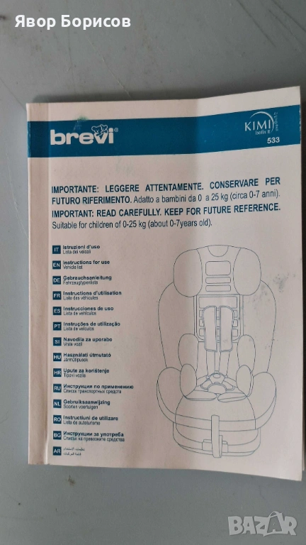 Оригинална книжка с инструкции на много езици, включително български