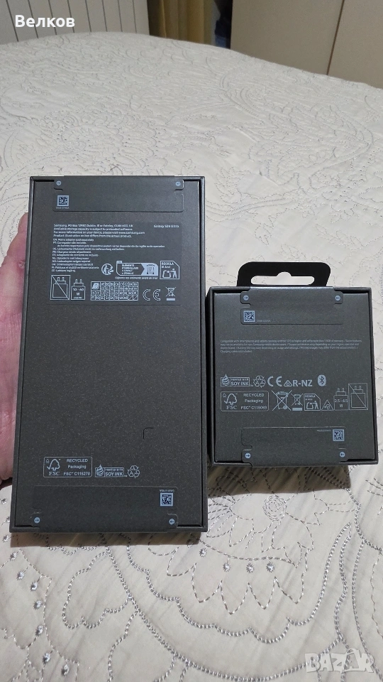 2. Доставка с куриер: В случай на интерес и след уговорка по телефона, мога да изпратя двете устройства по Еконт или Спиди, но само с опция „Преглед преди плащане“. Това означава, че купувача може да прегледа транспортната опаковка и целостта на фабричните пломби на Samsung, но условието за отваряне на самите фабрично запечатани кутии на телефона и слушалките е допустимо само след окончателно закупуване.