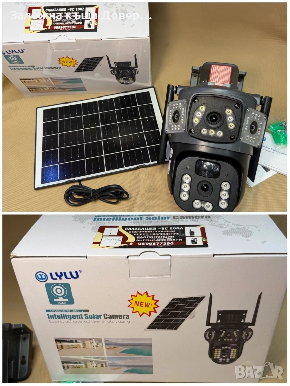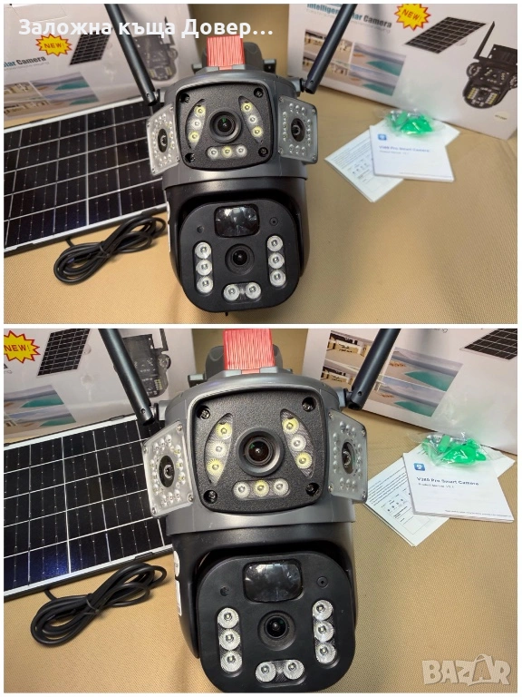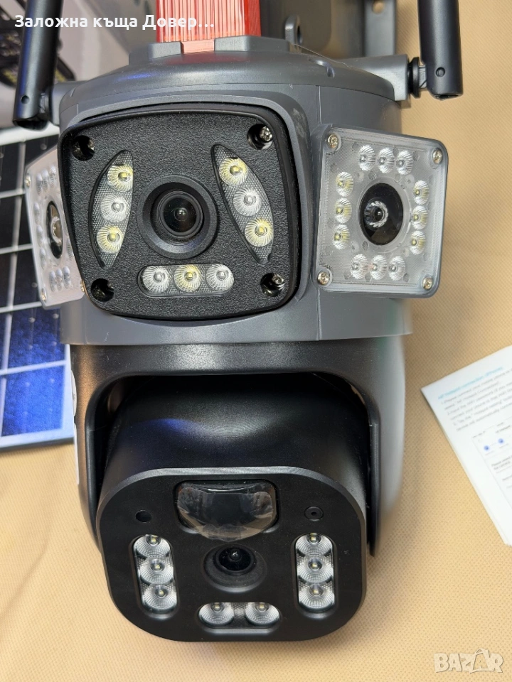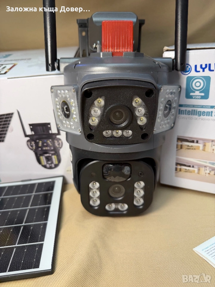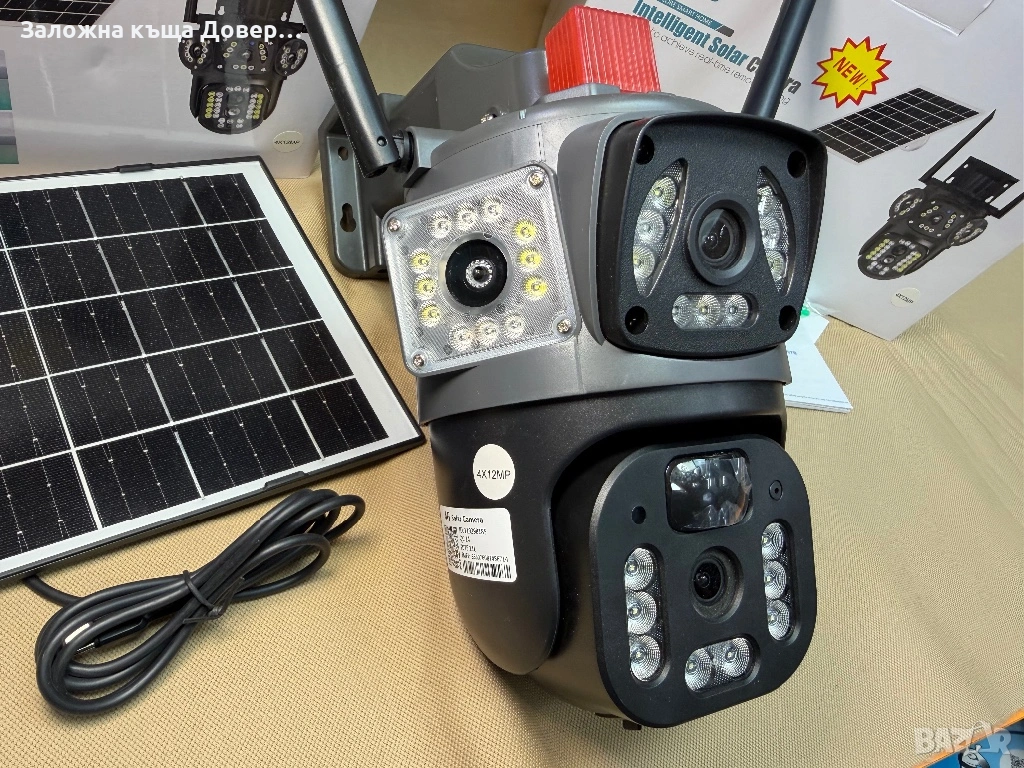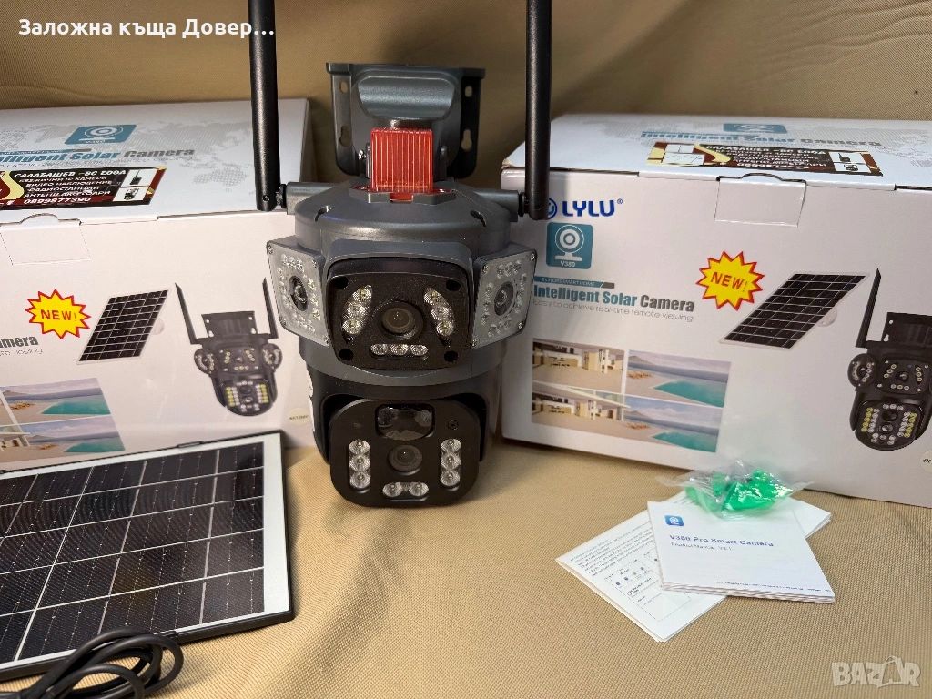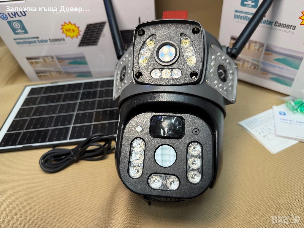 Последен модел 2026 LYLU тройна соларна камера със сим карта 4 x 12 mpx реално високоскоростно 4G sim !! На много камери пише “4G” но са 2 или 3 G !!
