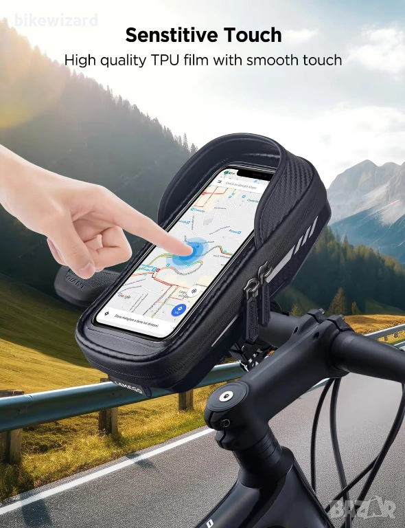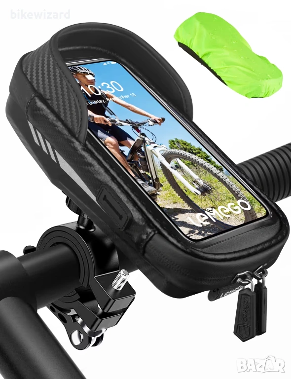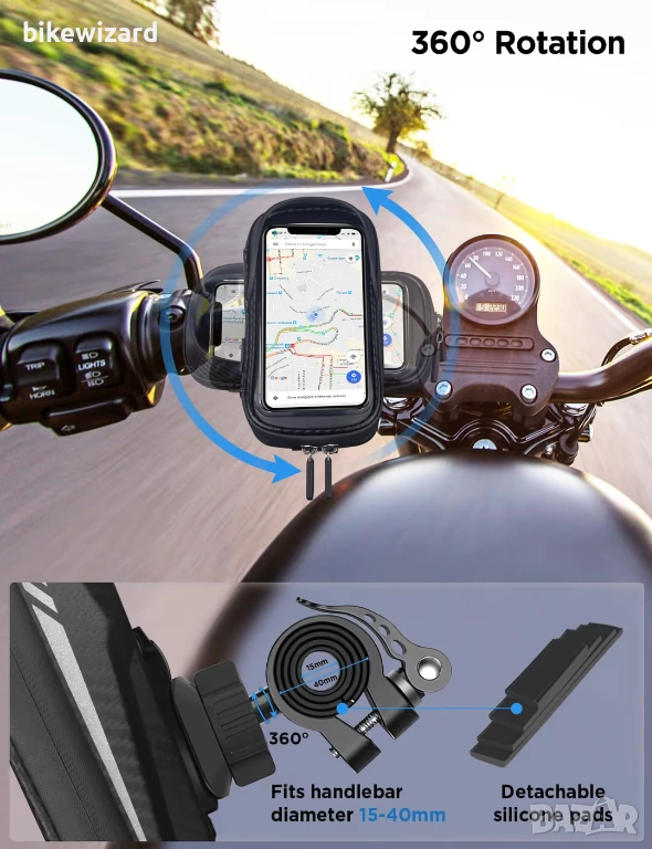 LEMEGO Водоустойчива стойка за телефон за велосипед, въртяща се на 360° за смартфони 4.7-7 инча НОВА → Обява 54033780