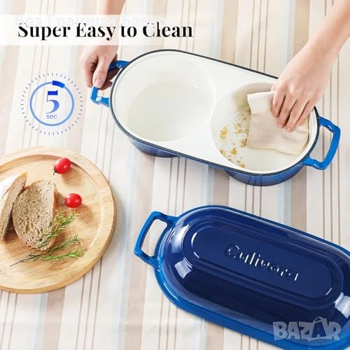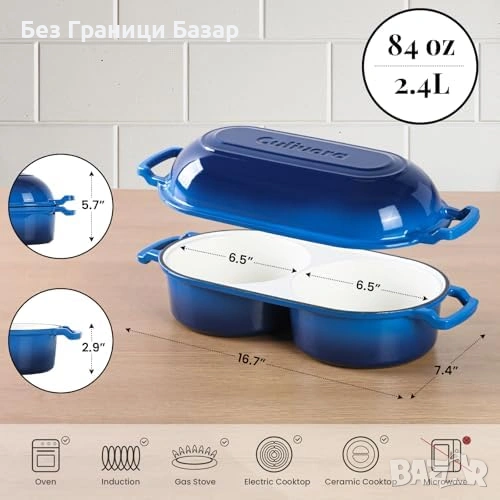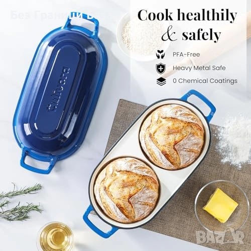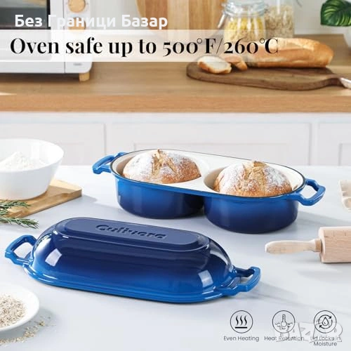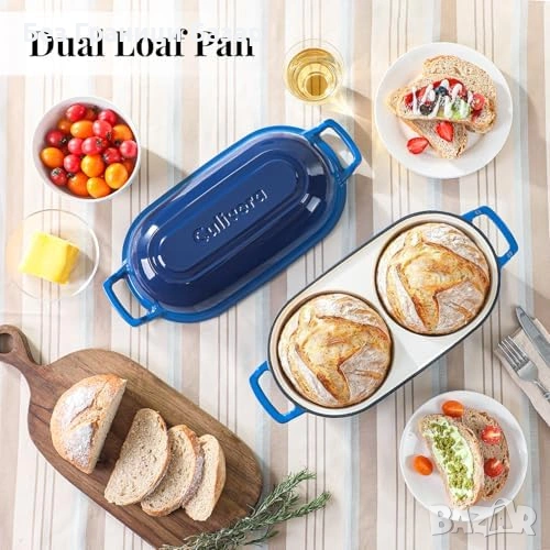 Нов Емайлиран чугунен съд за квасен хляб с капак двойна форма синя 16.5 см