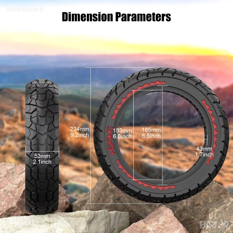 10x2.125 офроуд плътни безкамерни гуми за скутер – червени 2 броя → Обява 54033935
