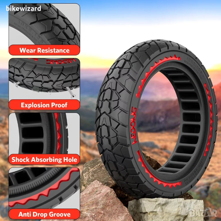 10x2.125 офроуд плътни безкамерни гуми за скутер – червени 2 броя