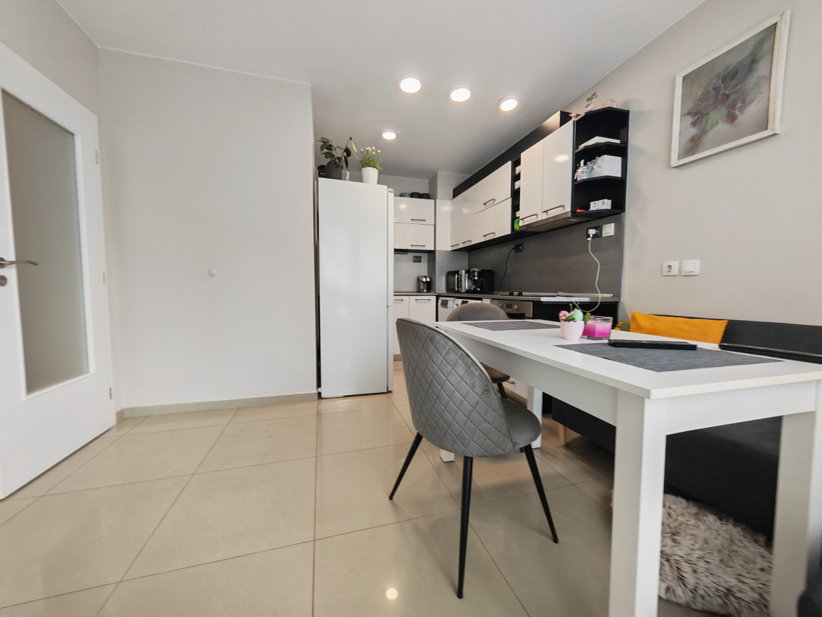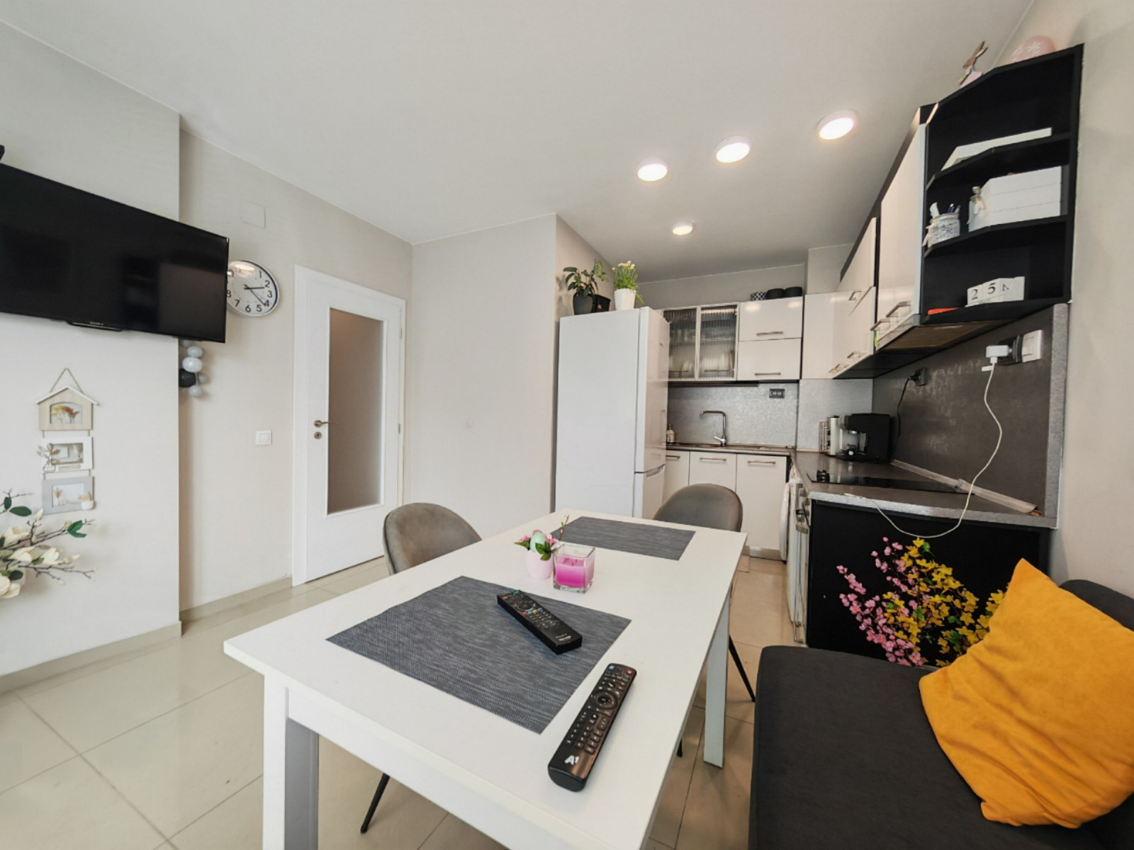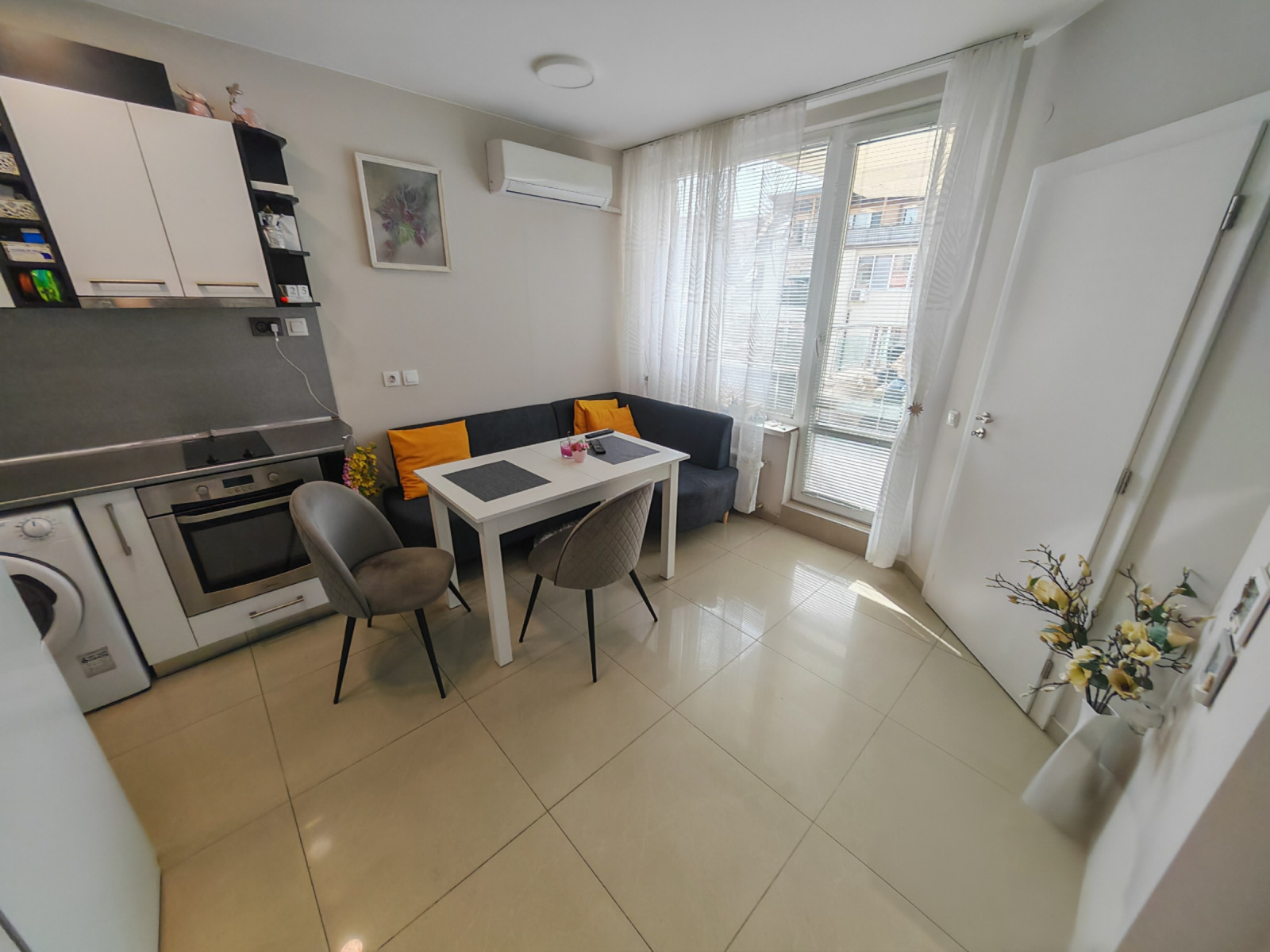Тристаен обзаведен апартамент до входа на метростанция Константин Величков. Състои се от хол с кухненски бокс, две спални, антре, баня с тоалетна и голяма панорамна тераса.