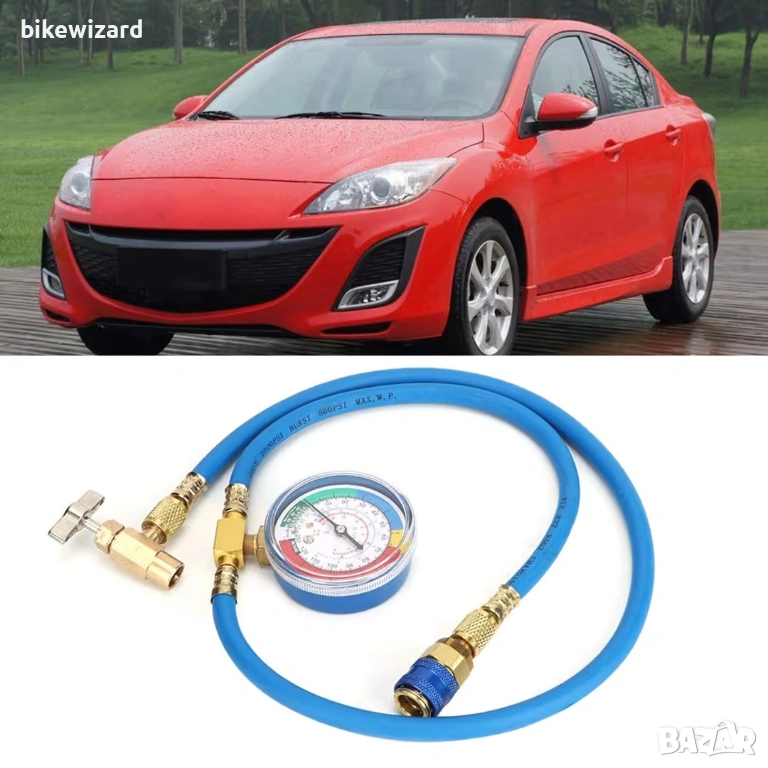 Комплект маркучи за пълнене на хладилен агент R134A с манометър – 1/4-инчов SAE конектор НОВО → Обява 54034177