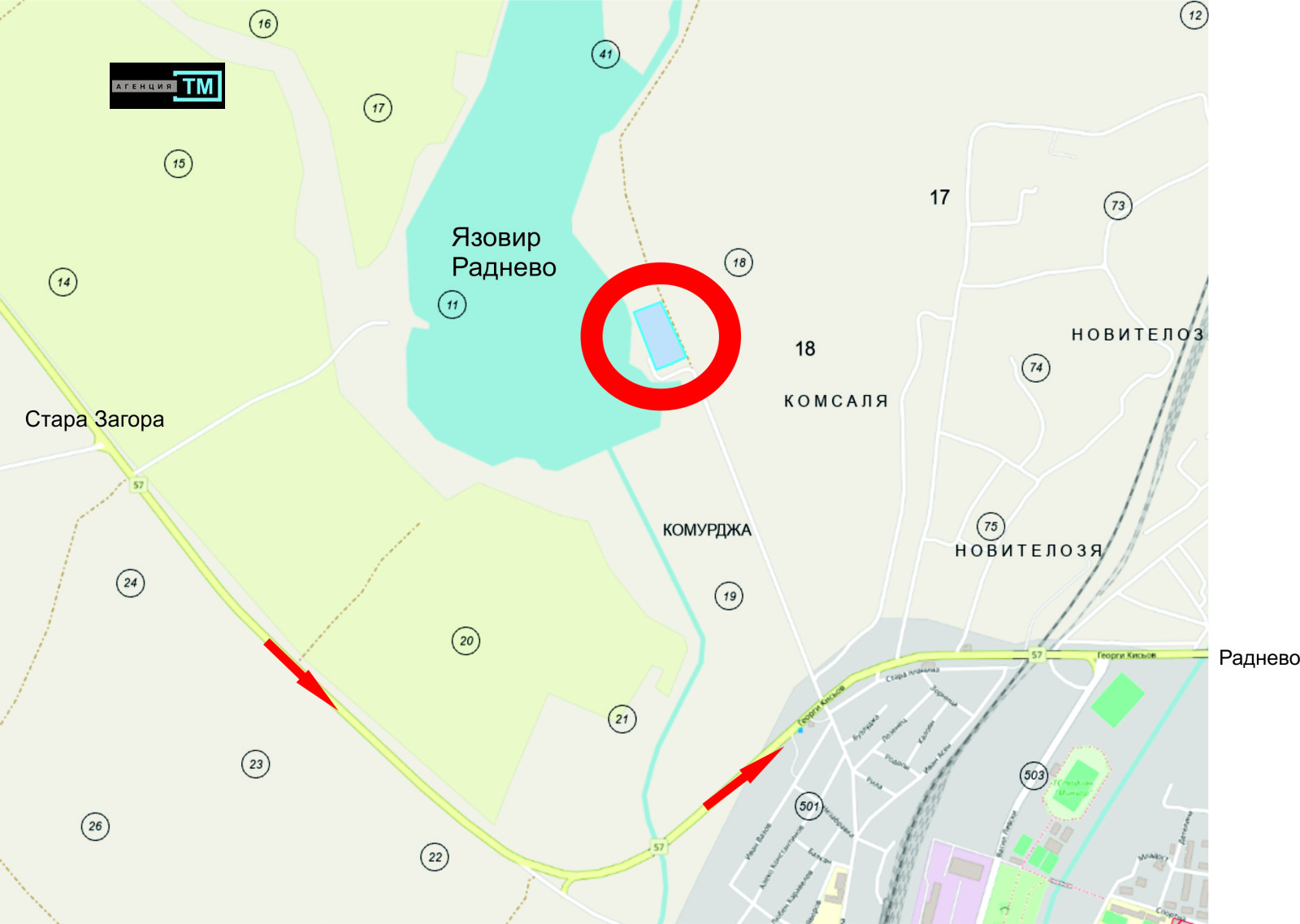 Прекрасен парцел с цел инвестиция, на брега на яз. Раднево. 8533кв.м.