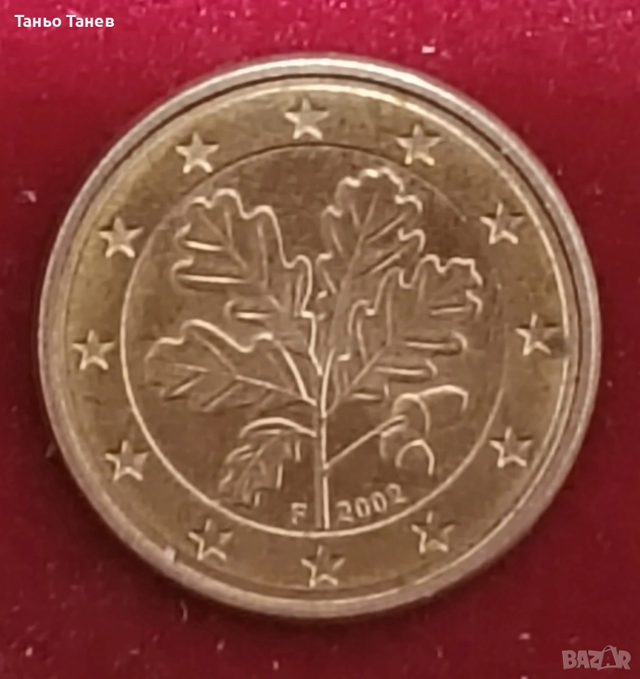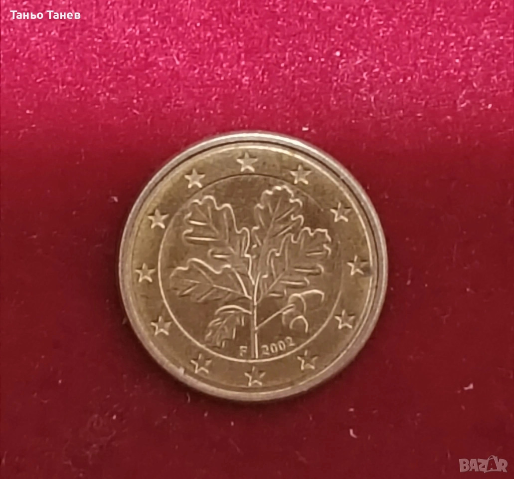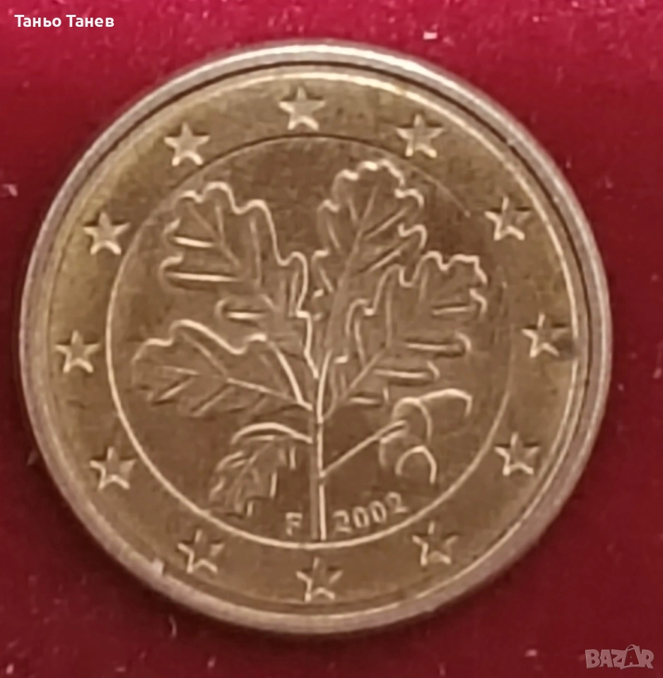 Германска монета от 1Евро цент със буквата (F) 2002г. → Обява 54034580