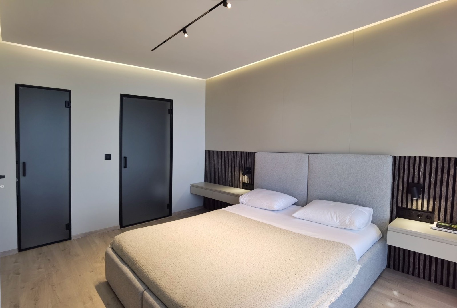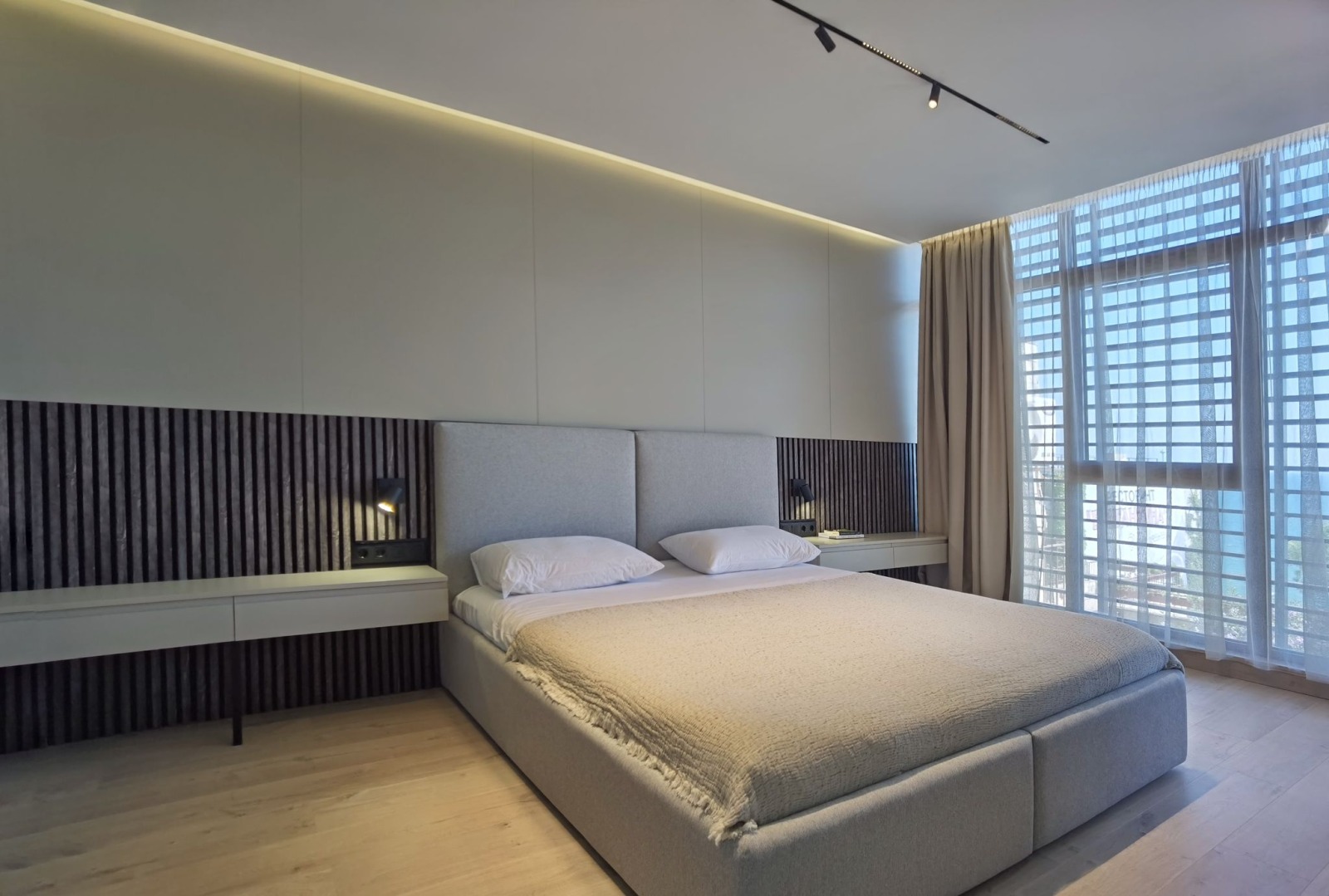 Апартаментът е модерно и стилно обзаведен, готов за нанасяне. Просторната тераса предлага впечатляваща панорамна гледка към морето, както и гледка към басейна идеално място за отдих и релакс.