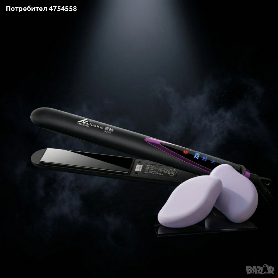Професионална преса за коса с турмалинови керамични плочи + Подарък 2 броя кристален уред → Обява 54034935