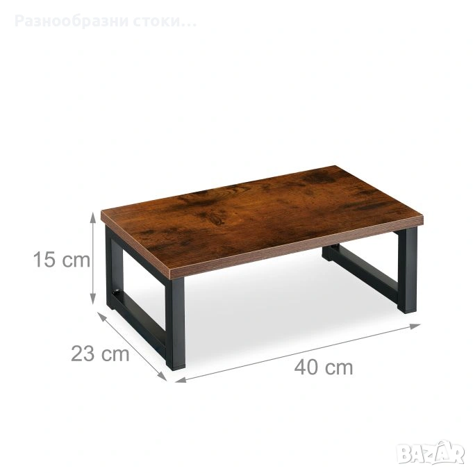 Стилна и стабилна стойка за монитор в рустик дизайн. Идеална за оптимизиране на работното пространство и подобряване на стойката при работа пред компютър.
