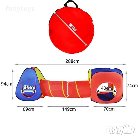 Детска палатка с тунел и къща, 3 в 1, KRUZZEL, 288x94x70 см → Обява 54035122