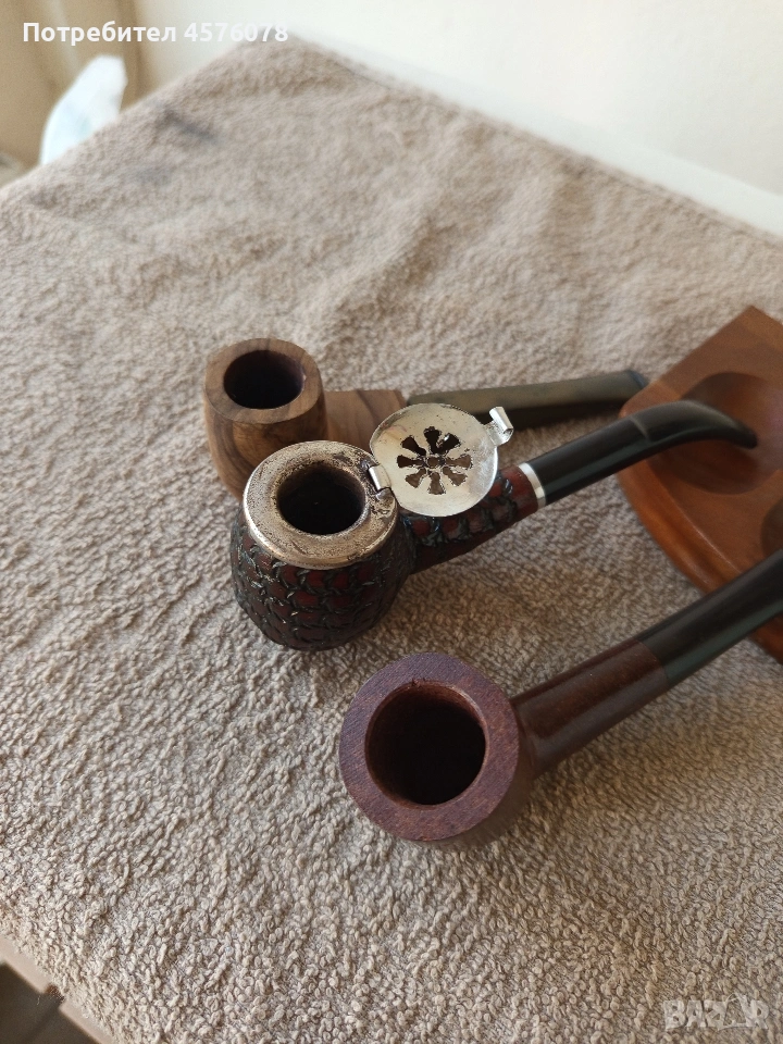 три броя стари лули за тютюн със стойка. информация по снимките. обща цена 60евро.
