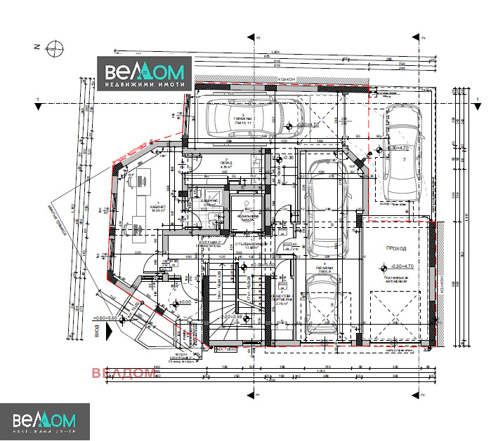 Агенция ВЕЛДОМ продава КАБИНЕТ в новопостроена сграда с Акт 16 в Гръцката Махала. Кабинетът е на партер, състои се от 2 помещения и санитарен възел с площ 34 м2 и Н-2,80 м. Възможно е преразпределение, незасягащо конструкцията на сградата, според потребностите на бъдещия собственик. Цена 139000 Е. До кабинета , на същото ниво, граничи гараж с площ от 30 м2 и Н-3,20 м с ток и вода, който би могъл да бъде приобщен към кабинета. Цена на гаража 65 000 Е. Той от своя страна граничи с открито паркомясто на стойност 40 000 Е. Практически може да се оформи имот с 4 стаи и 2 входа, ако е необходимо, както и да се трансформира в жилище. Обща цена на всичко-244000 Е, сумарна площ 94 м2.