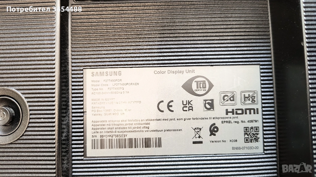 Монитор Samsung F27T450FQR 27″, Full HD 16:9, HDMI, DisplayPort, USB Hub → Обява 54035901
