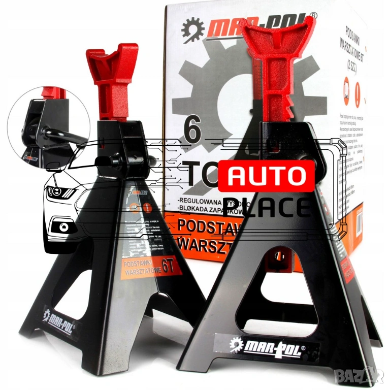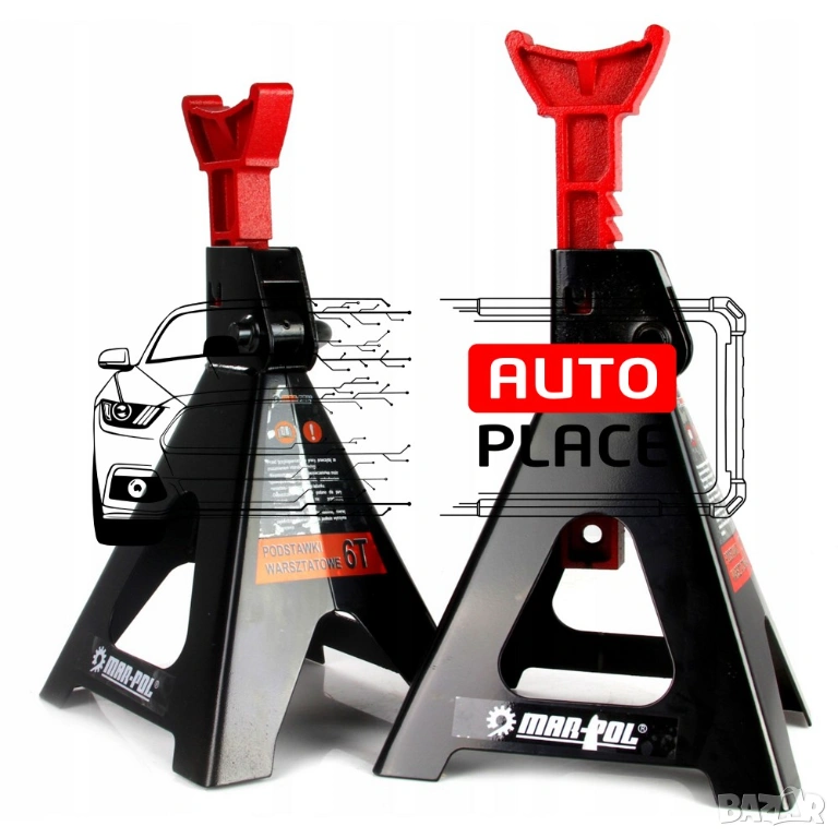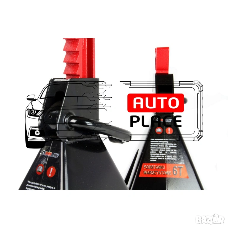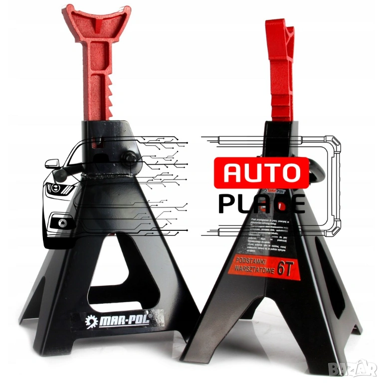 Стойките осигуряват сигурна и стабилна опора на автомобила върху специално профилирани седла. Заключващият лост ефективно закрепва опорните колони в избраната позиция. Изработени са от здрава стомана и се характеризират със здрава, заварена конструкция. Краката на криковете са със заварени широки крака, стабилизиращи опорите при работа под товар.