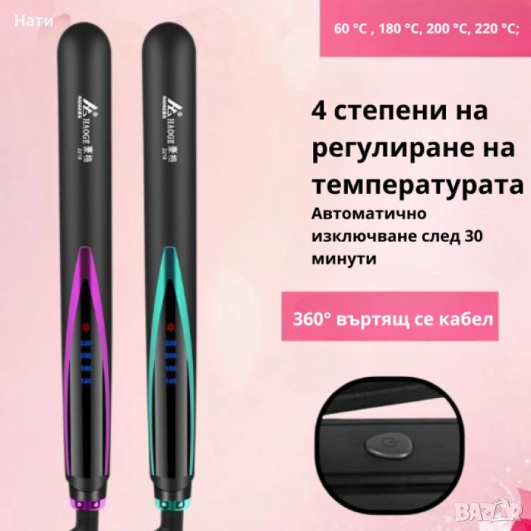 Професионална преса за коса с турмалинови керамични плочи + Подарък 2 броя Компактен кристален уред → Обява 54036037