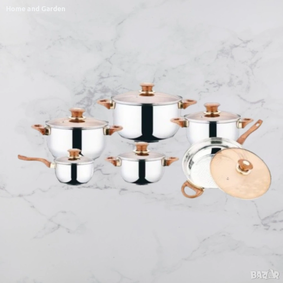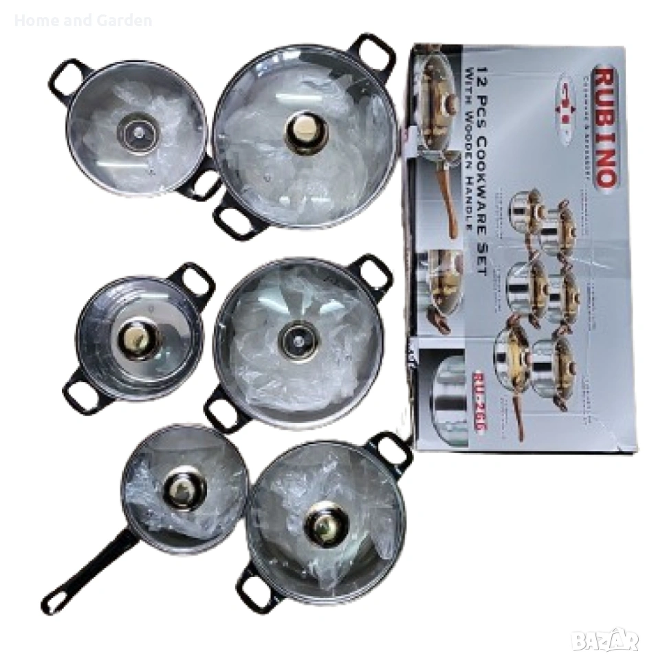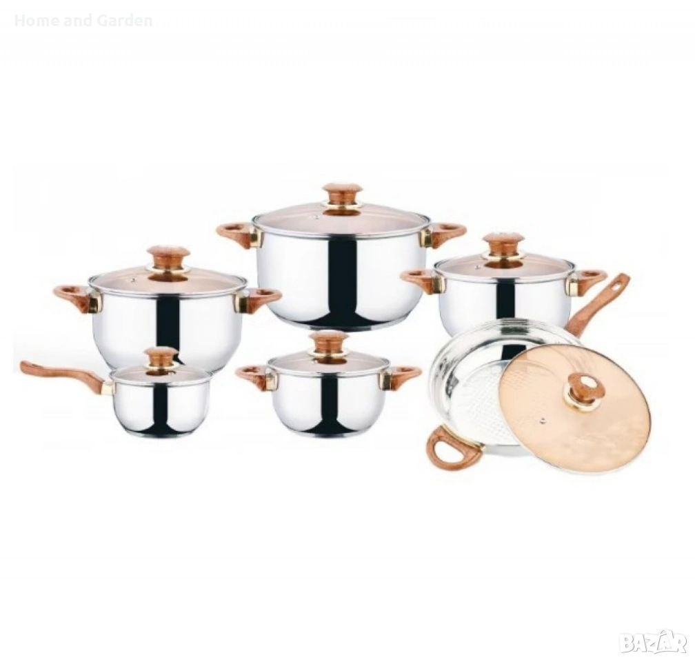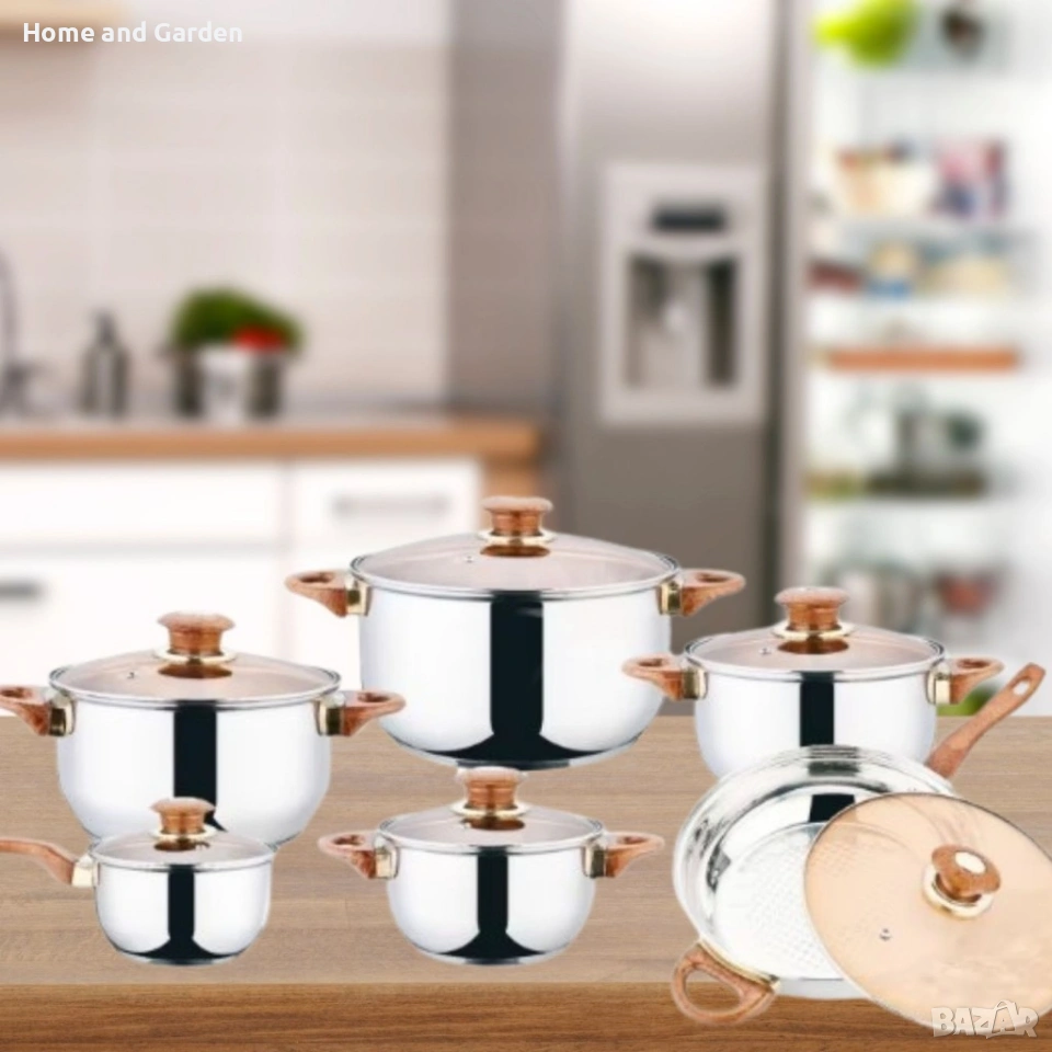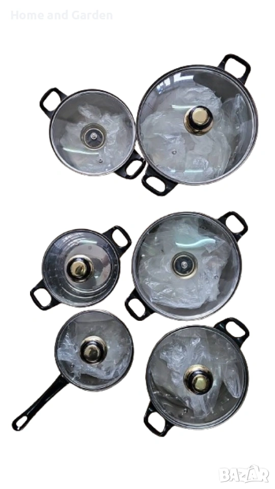 Комплект от 12 части съдове за готвене от неръждаема стомана със стъклени капаци
