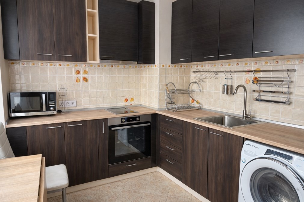 Имотът е обзаведен, с площ 65 кв.м, на 8-ми от 9 етажа в сграда с асансьор. Разпределението включва входно антре, просторна дневна, кухня с трапезария, спалня, баня с тоалетна и тераса.
