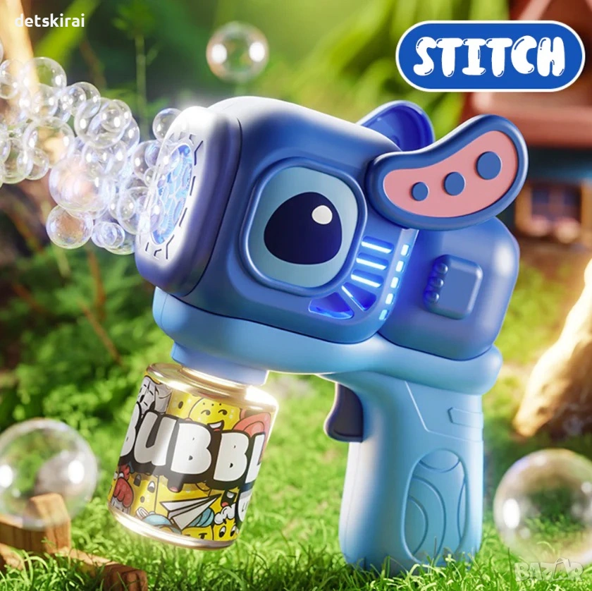 Пистолет за много балончета Stitch – забавна играчка с едно докосване | Цветни балони и усмивки