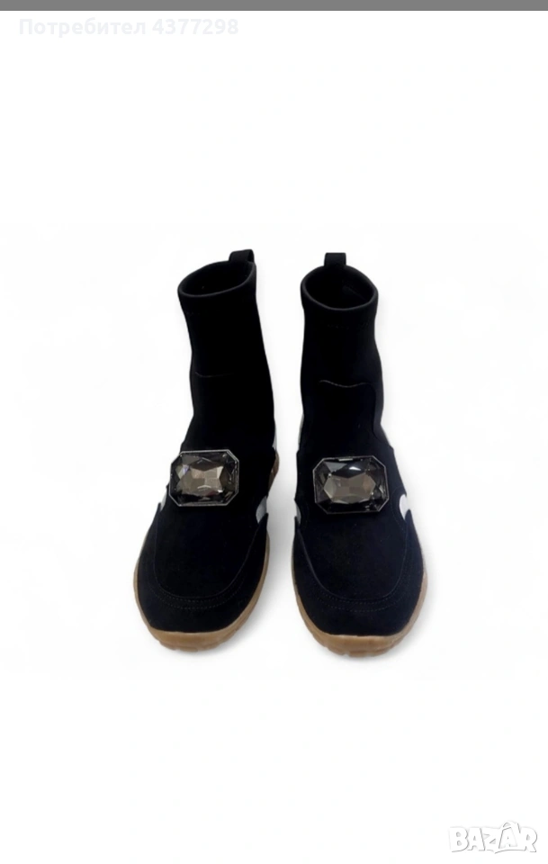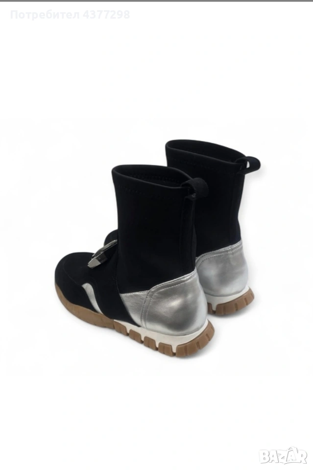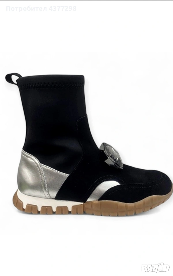 Лимитирани дамски спортни боти в черно, неопрен, 100% ярешка велурена кожа, неопрен, сребриста телешка кожа и фасетиран камък.