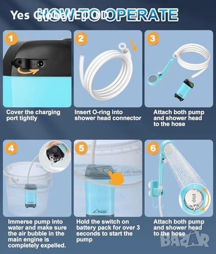 Преносим душ WADEO с батерия 6000mAh и дисплей
