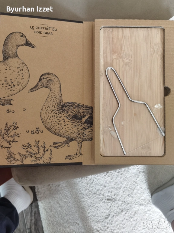 Комплектът включва кутия, дъска за рязане и телесна резачка. Предназначена за чисто и прецизно нарязва е на патешки или гъши дроб